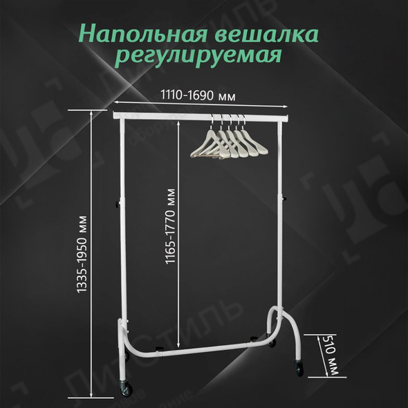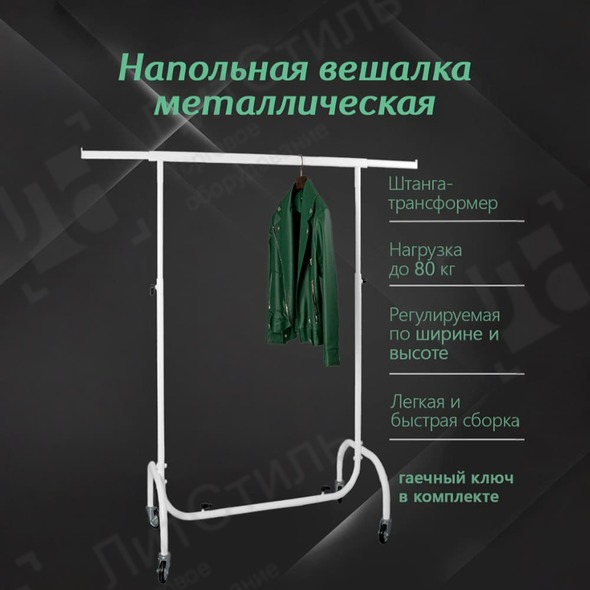 - Вешало напольное для магазина одежды передвижное на колесах СТ-014Н-Л(бел)